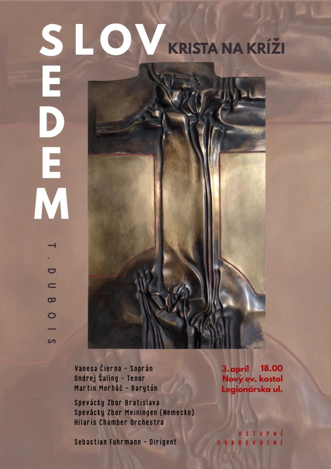• Srdečne vás pozývame na Veľkopiatočné pašie do Nového evanjelického kostola na Legionárskej ulici v Bratislave, 3. 4. 2026 o 18.00 h, kde zaznie nádherné oratórium francúzskeho skladateľa Théodore Dubois Sedem slov Krista na kríži.