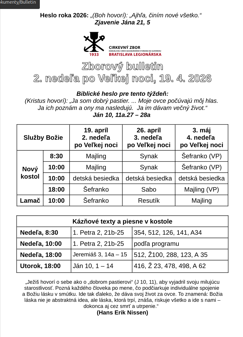 Kázeň z evanjelických Služieb Božích v Bratislave (Lamač/NK) Jeremiáš 3, 14a – 15: „14 Vráťte sa, odpadlí synovia! – znie výrok Hospodinov; lebo