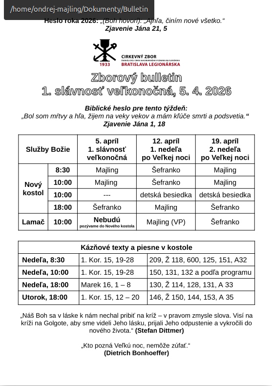 Zborový bulletin, 5. 4. 2026